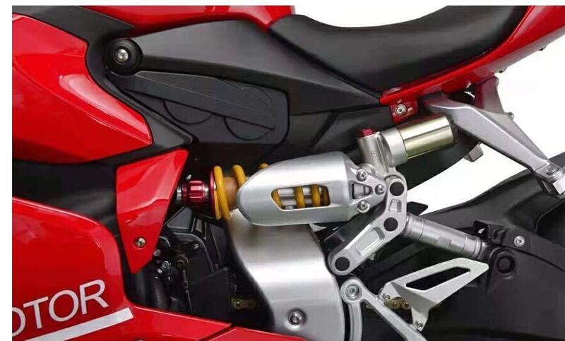 La moto non soltanto ha estetica fotocopiata dalla Panigale e identica grafica Ducati, pardon, Moxiao Motor; ma anche tecnicamente ne riprende le soluzioni dove queste sono visibili.