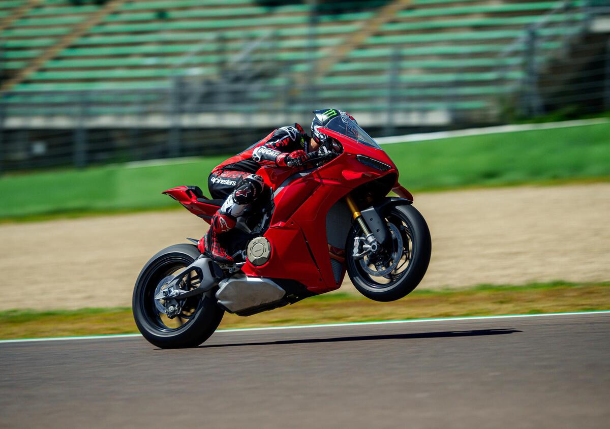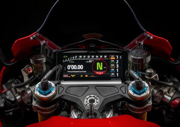 Ma prima ancora un po' di dati tecnici. La nuova Panigale V4 (nella versione S) è ancora più vicina alla Desmosedici GP: pesa solo 187 kg, due in meno rispetto al modello precedente, e guadagna 0,5 CV nonostante la più restrittiva omologazione Euro5+. Mentre la nuova carenatura si ispira alla Ducati 916 e alla 1098, riduce la resistenza aerodinamica del 4% grazie alle ali a doppio profilo, mantenendo comunque invariato il livello di deportanza rispetto al modello precedente. La sella ha ora una conformazione più larga, il serbatoio ha una nuova forma, mentre il motore sviluppa ora una potenza massima di 216 CV (159 kW) a 13.500 giri/minuto. Come se non bastasse il propulsore è stato alleggerito di 1 kg, poi potenza e coppia possono crescere ulteriormente raggiungendo rispettivamente i 228 CV e i 127,8 Nm montando lo scarico full-racing Ducati Performance by Akrapovič.
