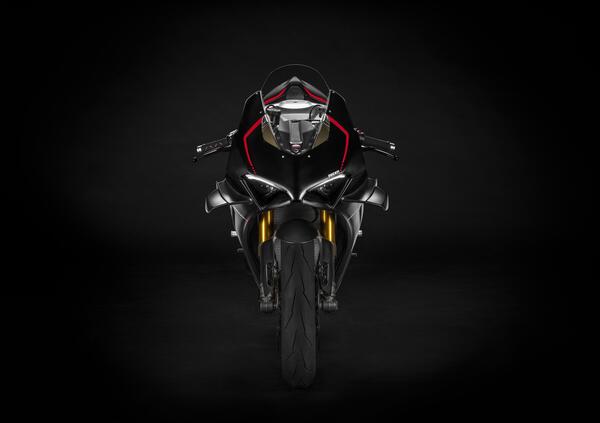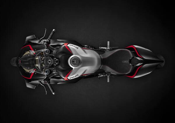 Riconoscibile fin dal primo colpo d'occhio dalla livrea nera con filetti rossi, tipica dei test invernali per i team Ducati (naturalmente rielaborati dal centro stile della Casa di Borgo Panigale) e per la frizione a secco che spunta orgogliosa dalla carenatura, la Ducati Panigale V4 SP è prodotta in serie limitata con progressivo inciso sulla piastra di sterzo. Il serbatoio è l'unità in alluminio spazzolato della V4R.