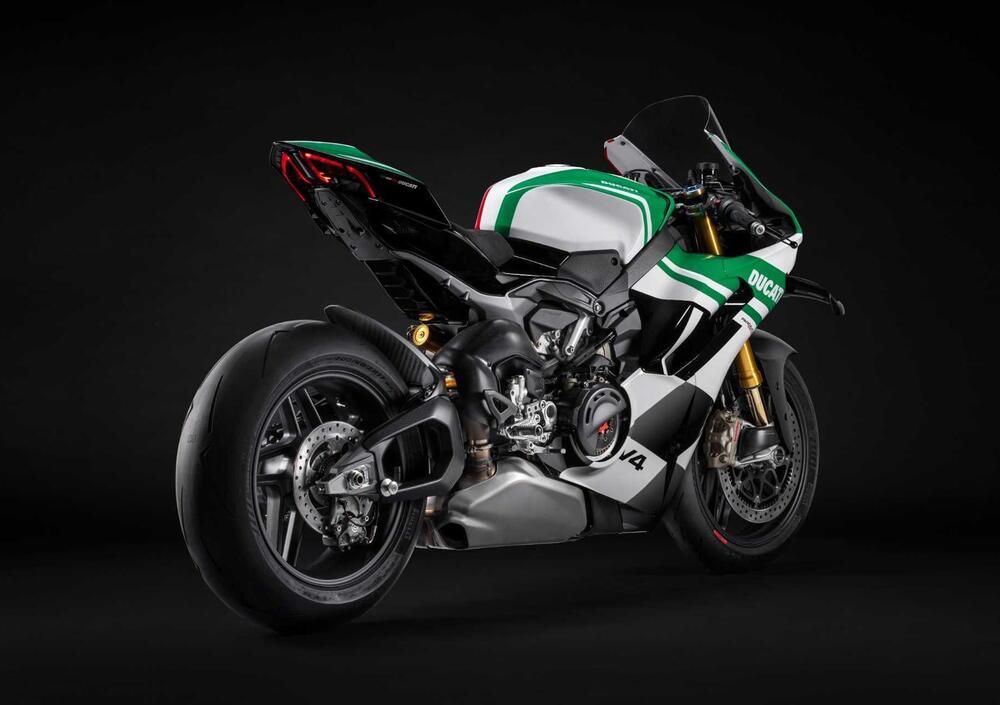 Le caratteristiche tecniche confermano l'impronta racing: cerchi in fibra di carbonio che riducono il peso di 0,950 kg, un innovativo impianto frenante Front Brake Pro derivato direttamente dalle competizioni con dischi T-Drive sempre Brembo da 338,5 mm di diametro e 6,2 mm di spessore, pinze Hypure dotate di un trattamento di anodizzazione in color titanio e dal logo Brembo di dimensioni maggiorate. La pompa freno anteriore è una MCS 19.21 con registro remoto della posizione leva freno, come avviene sulle MotoGP e Superbike. La dotazione speciale della Tricolore è completata dalla frizione a secco, dalle pedane regolabili in alluminio dal pieno, e dal modulo GPS. Chi inoltre vorrà utilizzare la Panigale V4 Tricolore in pista avrà a disposizione il tappo serbatoio racing in alluminio dal pieno, i convogliatori pinze freno, il coperchio frizione aperto in fibra di carbonio ed il kit per la rimozione del portatarga, tutti forniti a corredo. L’esperienza di salire in sella a questa moto da collezione sarà resa ancora più speciale, grazie alla sella in Alcantara, al plexiglas racing e all’animazione dedicata del cruscotto al key-on.