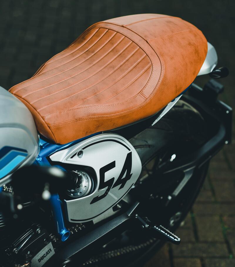 Sella biposto Café Racer - Il massimo in termini di ergonomia per pilota e passeggero. La nuova sella biposto si contraddistingue per il tessuto pregiato e il design che racchiude i valori fondamentali del brand Scrambler.