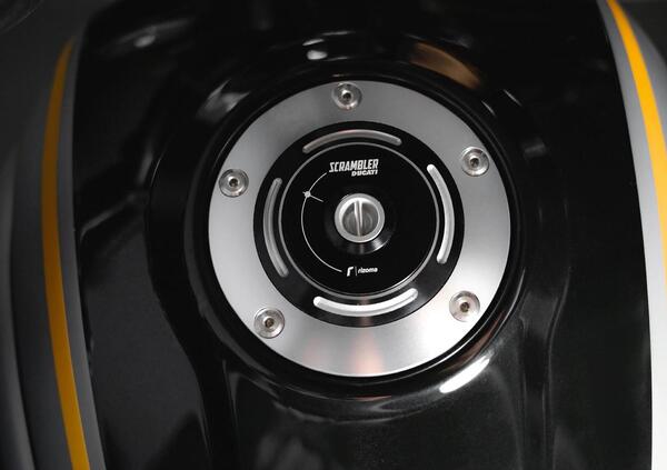 Tappo serbatoio in alluminio dal pieno - Sviluppato in collaborazione con Rizoma e realizzato in alluminio dal pieno con pregiate lavorazioni a vista per esaltarne il design, il tappo serbatoio è dotato di una chiave dedicata e personalizzata con il logo Ducati, che può essere usata anche come portachiavi.