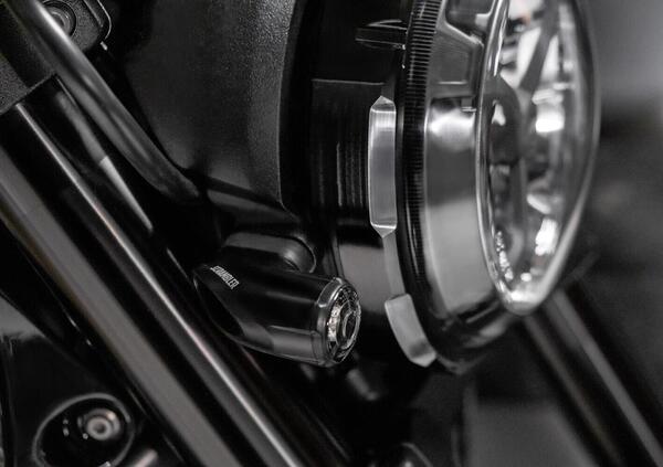 Protezione fanale a X - Elemento appartenente al mondo Off-Road; la X rivive il suo naturale significato sulla mascherina protettiva realizzata in acciaio, una reinterpretazione Scrambler ispirata al mondo delle Café Racer.