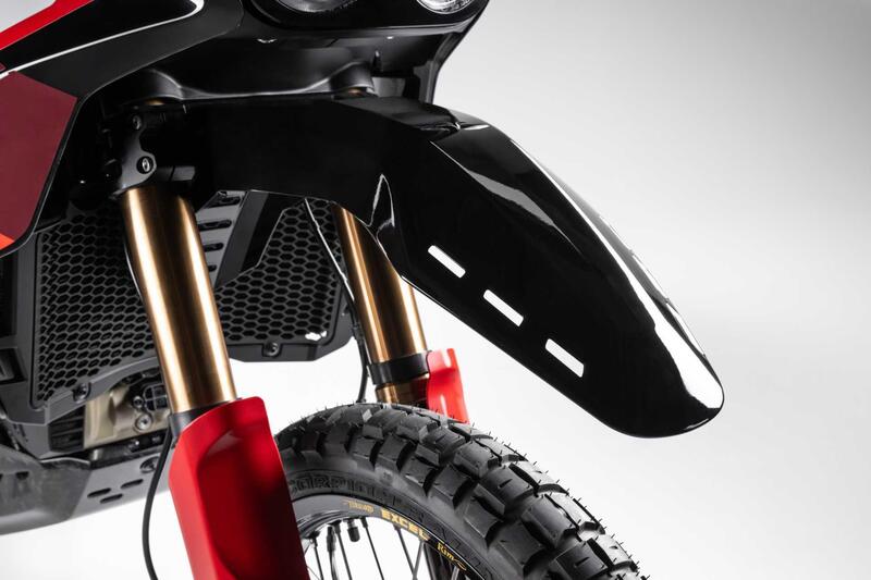 Ancor prima che per la componentistica, la DesertX Rally si distingue nello stile con una livrea dedicata e soluzioni tipiche del mondo off-road che ne caratterizzano l’estetica come spiegato anche nel video. Oltre all'evidente parafango alto, è però grazie alla dotazione tecnica che la Rally diventa una vera e propria moto da fuoristrada. Le sospensioni Kayaba a corsa maggiorata con forcella a cartuccia chiusa e ammortizzatore con pistone maggiorato sono di derivazione motocross. Le nuove ruote a raggi centrali, con misure e caratteristiche proprie del fuoristrada racing, rendono la Rally una moto inarrestabile su ogni tipo di terreno e vengono abbinate al bel paracoppa in carbonio forgiato, leggero e resistente, e ai pedali di cambio e leva freno posteriore ricavati dal pieno.