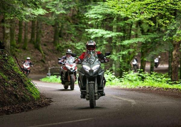 Il format DRE Adventure si caratterizza per un programma ampio che vede momenti di esercitazione affiancati a un tour immerso nel verde in cui è possibile apprezzare le caratteristiche dinamiche delle moto.