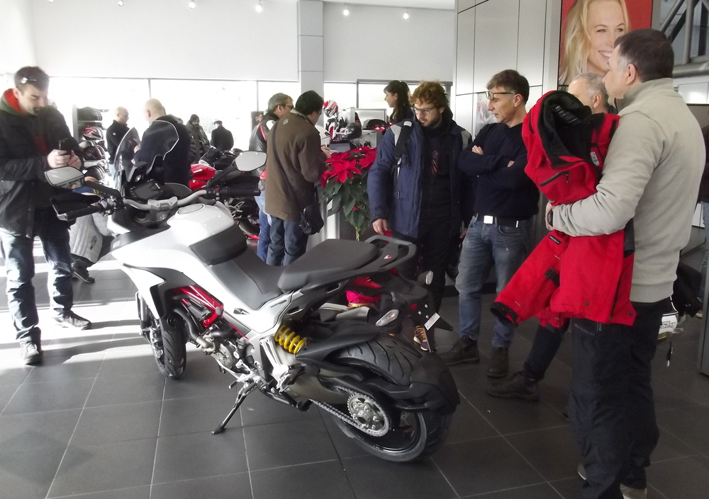 Il primo “porte aperte” del nuovo anno non poteva iniziare in modo migliore: tutti in fila per salire in sella alla debuttante Multistrada, per un approccio statico in attesa di poterla finalmente provare su strada.