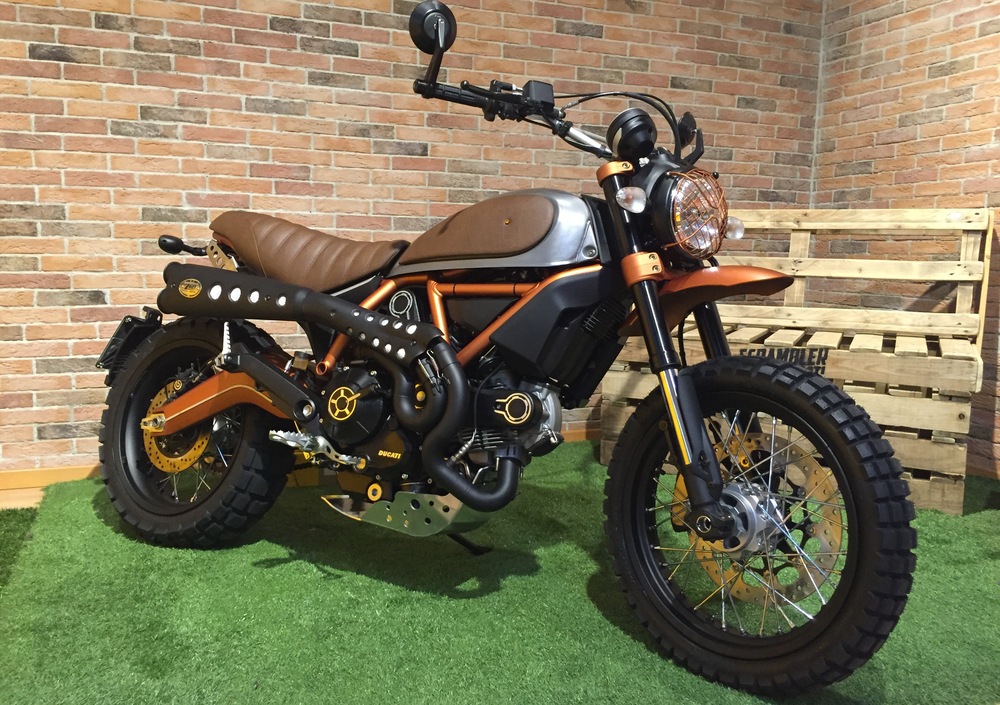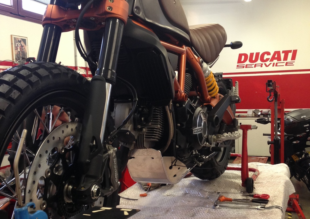 L'idea comincia a prendere forma appena presentato il progetto del concorso, ad aprile 2015. Io e Claudio, prezioso collaboratore, factotum e creatore di fiducia, ne abbiamo parlato a lungo; lui lavora con me 12 anni, sopporta i miei chiari di luna e spesso mi capisce meglio di come io capisca me. E negli ultimi anni ha avuto una forte crescita umana e professionale, aiutando il negozio intero a ottenere ottimi risultati. Aveva già personalizzato un paio di sue moto, sempre Scrambler, e stavolta volevamo fare il passo un po' più lungo.