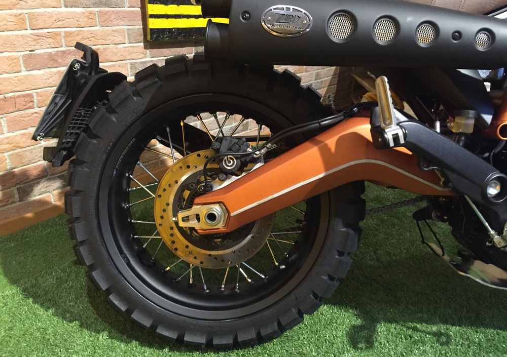 L'ispirazione ci è venuta dalla ruggine (Rust) appunto, dalla volontà di avere un look basico del metallo, (il serbatoio non verniciato, grezzo, e il telaio a contrasto che sembrasse arrugginito. così come ogni altro particolare metallico (griglia faro, parafango, piastre).