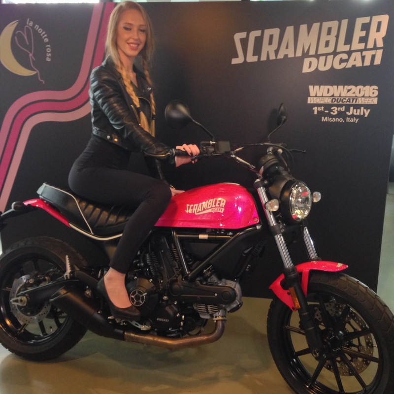 Il tema della Notte Rosa di quest'anno è “Pink Positive”. Per questo in Ducati hanno pensato di realizzare una Scrambler Sixty2 con una speciale livrea rosa shocking. La Scrambler Shocking sarà guidata dal sindaco di Misano Adriatico, Stefano Giannini, e aprirà la parata delle Ducati il primo luglio attraversando le strade che vanno dall'autodromo all'Acquafan di Riccione dove si terrà lo Scrambler Party.