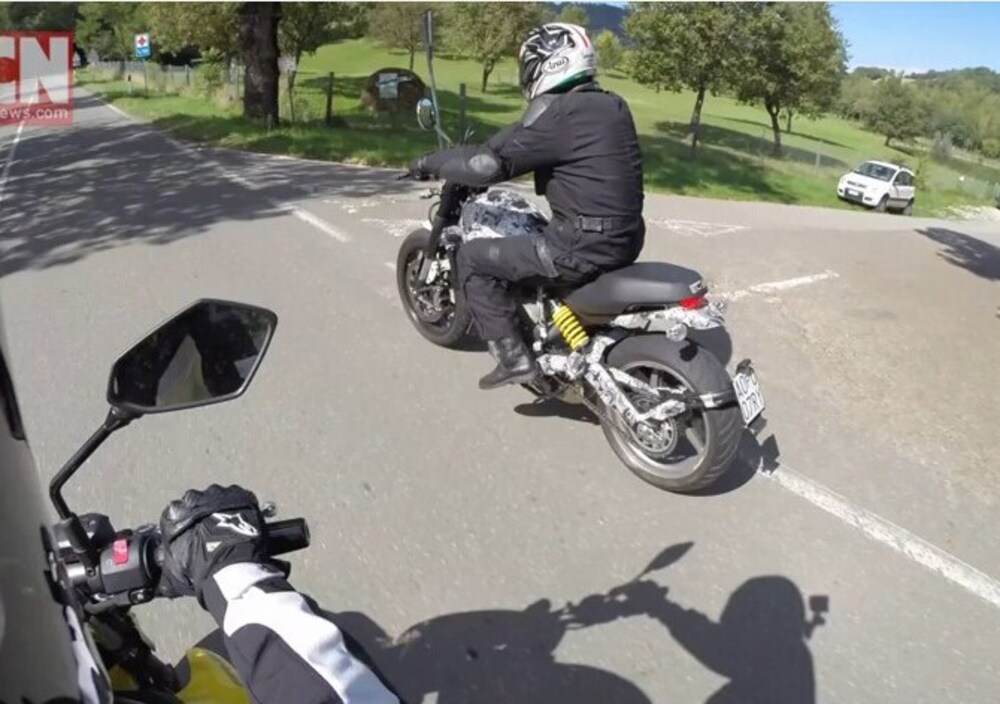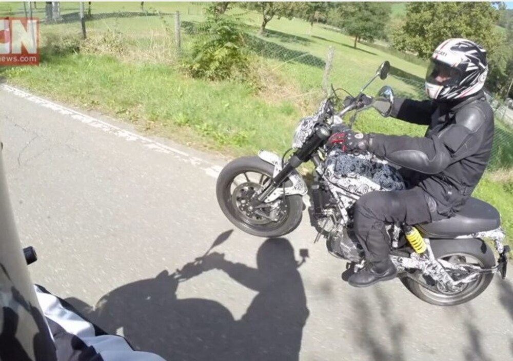 Il settimanale inglese MCN propone un video della Ducati Scrambler, beccata sulle strade intorno a Bologna. Un motociclista scorge la moto a un incrocio e decide - con la telecamerina già accesa - di seguirla per riprenderla. Più che un incontro fortuito, sembra un appostamento volto a incrociare la Scrambler impegnata in uno degli ultimi collaudi pre-produzione.