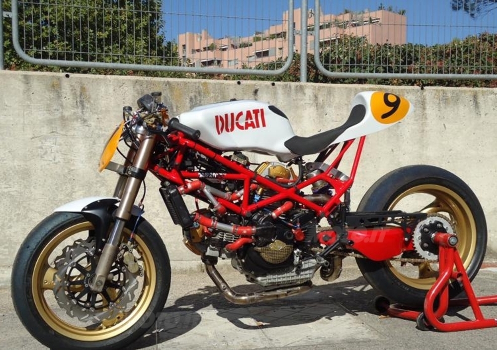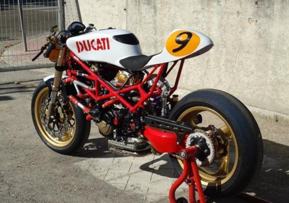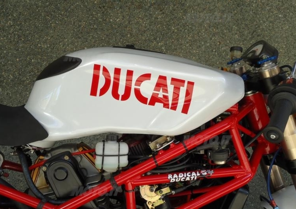 E' una moto fuggita dalla strada per inseguire in pista i simboli del passato. Ovviamente, anche se le forme e soprattutto i colori ricalcano le monocilindriche desmo degli anni '70, fin dal primo sguardo i 40 anni di progressi tecnologici balzano subito agli occhi .