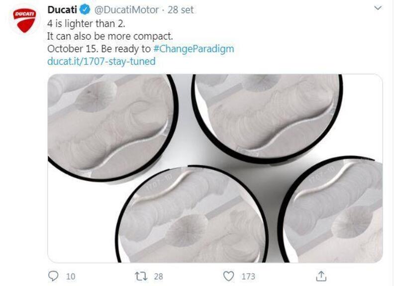 Per il prossimo 15 ottobre Ducati ha annunciato la presentazione di un nuovo motore V4, e lo ha fatto iniziando dai propri canali social il 28 settembre, per dedicare subito dopo una pagina web del sito ufficiale.