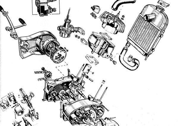 È interessante osservare che, dopo essersi affermato sui quadricilindrici (ove era anche vantaggioso ai fini della compattezza, in quanto consentiva l’adozione di interassi tra le canne molto ridotti), il raffreddamento ad acqua è stato adottato pure sui motori con due cilindri e perfino sui mono.