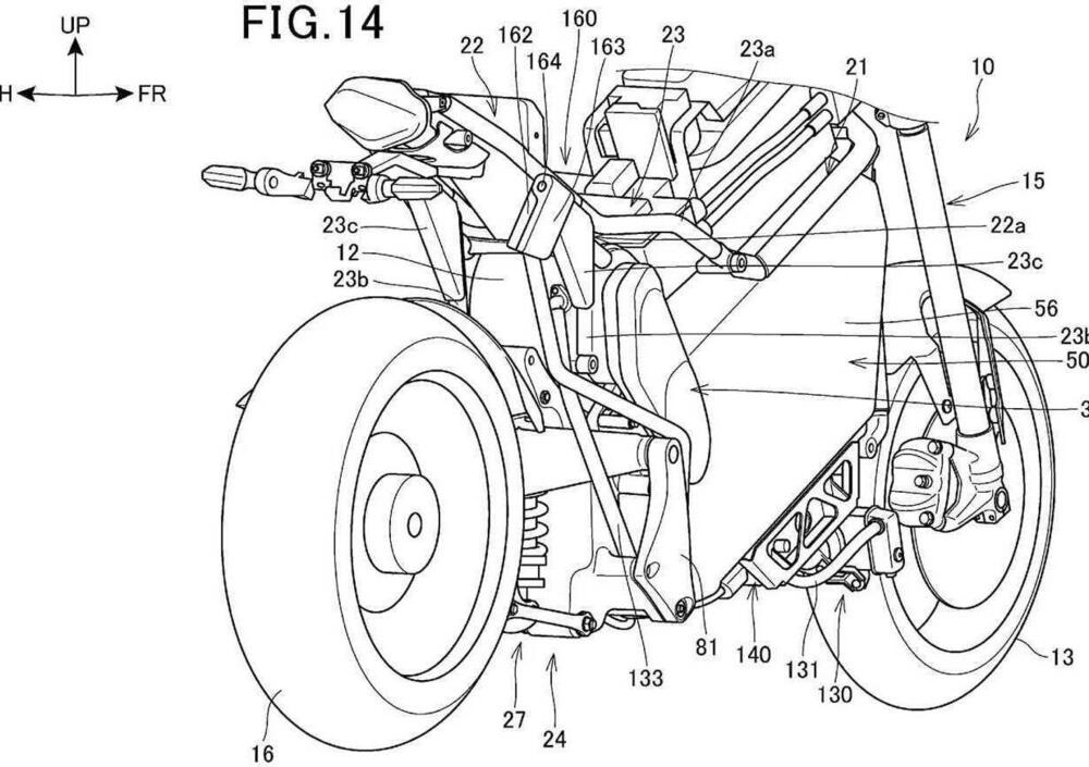 Parti come la forcella, il faro anteriore e persino il forcellone monobraccio proverrebbero direttamente dalla CB1000R e in effetti la moto degli schemi depositati appare piuttosto simile anche alla nuova Hornet 1000 attesa ad EICMA. Persino il finto serbatoio ha un design simile e sopra troviamo anche un "tappo" che anziché consentire il riempimento della benzina consentirebbe la ricarica. Il brevetto mostra un cavo di ricarica rimovibile che, quando scollegato, può anche essere riposto sotto il coperchio arrotolandolo attorno alla scatola di distribuzione dell'alimentazione.