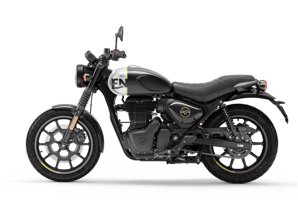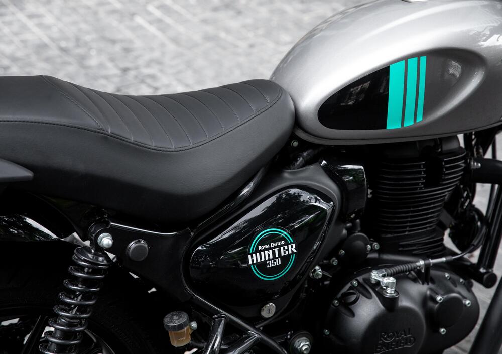 Tutto questo si è concentrato, passateci il termine, sulla nuova roadster che resta basata sul noto monocilindrico 2 valvole di 349 cc a corsa lunga, raffreddato ad aria e olio, capace di performance assolute identiche al resto della gamma di 350 cc ovvero 20,2 cavalli a 6.100 giri e 27 Nm a 4.000 giri; la differente progettazione del sistema di scarico scarico e dell'aspirazione, oltre al “fine tuning” di iniezione e accensione hanno portato però a definire un carattere peculiare e più adatto alla sportività della Hunter, senza rinunciare al classico suono allo scarico, pieno e tenace, tipico delle Royal Enfield. Il cambio è a 5 rapporti con la quinta marcia che funge da overdrive per il massimo del relax e dell'economia quando si viaggia a velocità costante. Con il serbatoio da 13 litri si dovrebbero raggiungere comunque almeno i 350 km di autonomia, mantenendo i consumi già ottimi della Classic e della Meteor.