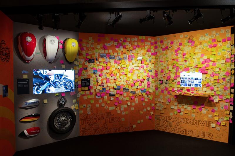 È sempre attiva inoltre, e lo sarà fino alla fine di settembre, la mostra temporanea “Scrambler 60th” all'interno del Museo Ducati, dove rivivere la storia del brand e delle sue moto. L’area tematica racconta la Land of Joy e i suoi mondi: design, lifestyle, personalizzazione, exploration e self-expression. I visitatori hanno anche potuto lasciare il segno del loro passaggio sulla parete dedicata al tema della self-expression, immediatamente riconoscibile perché colma di post-it colorati che raccolgono i pensieri, gli spunti e le emozioni di chiunque abbia visto la mostra.