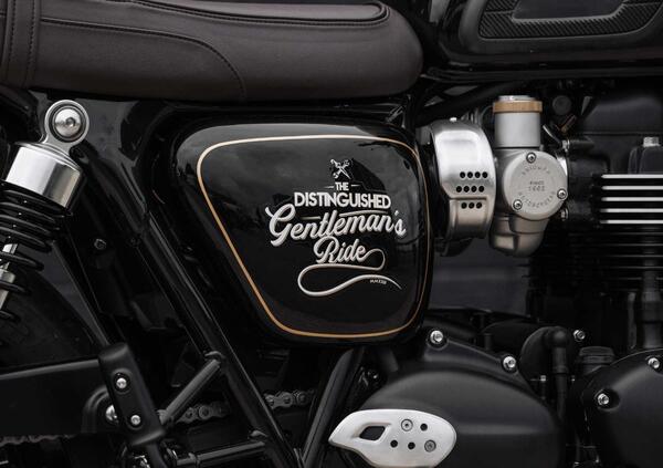 Il 2023 segna il decimo anno di questa partnership e rappresenta un enorme traguardo per Triumph e la DGR. Per celebrare questo storico anniversario e contribuire a rendere l'evento DGR 2023 il più grande e di maggior successo fino ad oggi, Triumph presenta la nuova Bonneville T120 Black Distinguished Gentleman's Ride Limited Edition, prodotta in serie limitata in 250 esemplari a livello globale.
