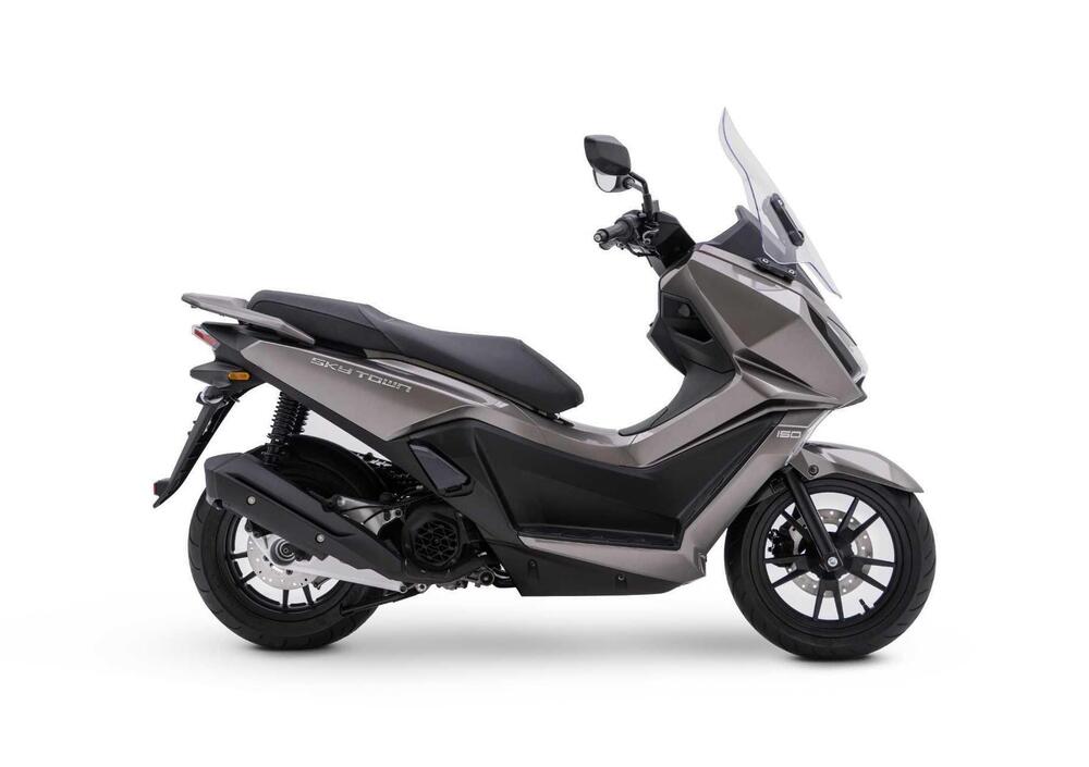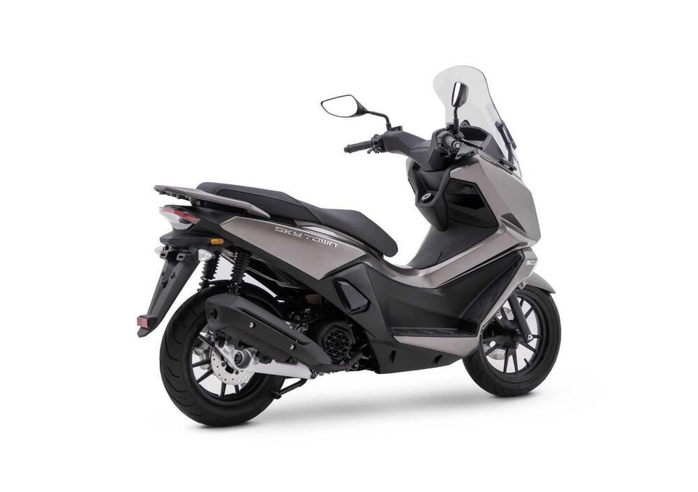 Il frontale dello Sky Town sfoggia linee tese e un design che mette in evidenza la sua dinamicità. Illuminazione a LED integrata nello scudo anteriore e ampio parabrezza, i fianchi sono snelli e si raccordano in modo uniforme con la parte posteriore dello scooter.