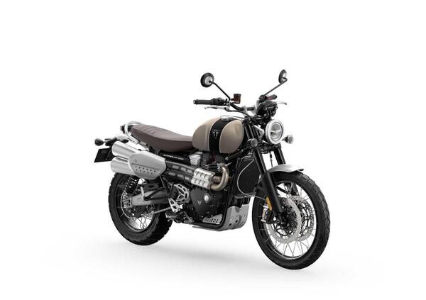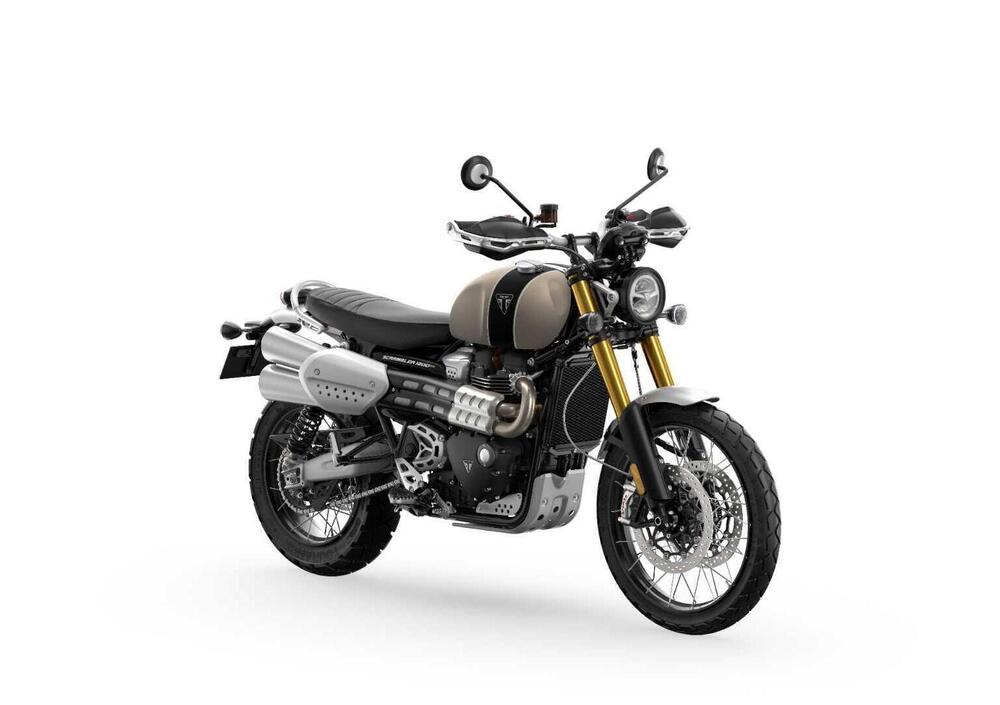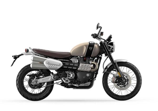 La gamma Scrambler 1200 verrà venduta in 3 varianti cromatiche per il 2024, con il raffinato Sapphire Black o il classico Matt Khaki & Matt Jet Black, che saranno affiancati da un affascinante opzione Matt Sandstorm con contrasto in Jet Black.