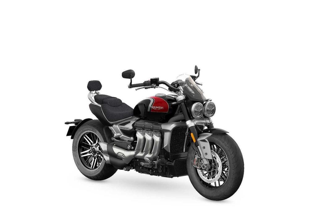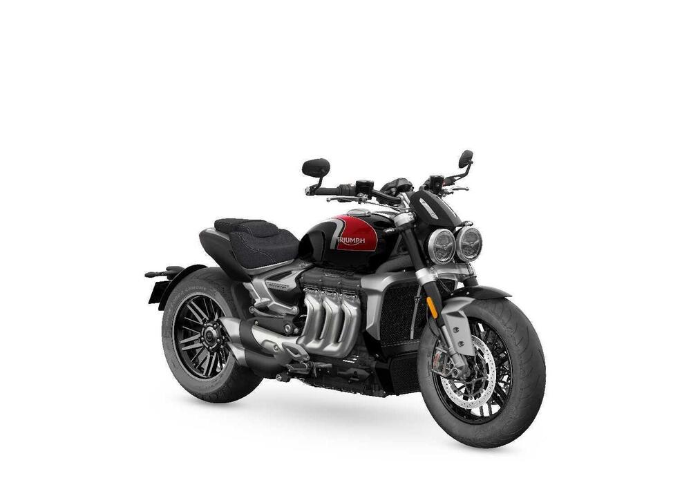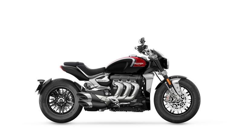 La muscolosa Rocket 3 R già disponibile in Matt Silver Ice e in livrea Sapphire Black aggiunge adesso la colorazione Sapphire Black & Carnival Red con dettagli Silver Ice, anche per la GT viene introdotta la versione in Sapphire Black & Carnival Red con dettagli Silver Ice, ed è comunque mantenuta la Sapphire Black in line-up.