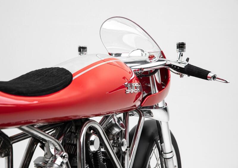Le proporzioni giuste sono state trovate con ruote a raggi da 18 pollici montate su mozzi appositi. Anche i freni e le pinze sono dei pezzi unici realizzati assieme agli specialisti di Hayes, e fatte su misura sono tutte le componenti ciclistiche, i comandi a pedale e al manubrio mentre lo scarico due in uno in acciaio, realizzato a mano, dà il giusto tocco finale.