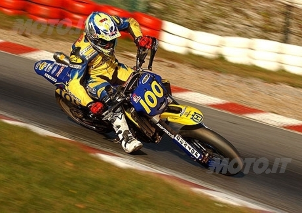 Eddy Seel e l’Husqvarna hanno chiuso in bellezza la stagione supermotard 2003 vincendo anche l’ultima gara della stagione, quella che ogni anno a dicembre si disputa all’interno del Motor Show di Bologna.