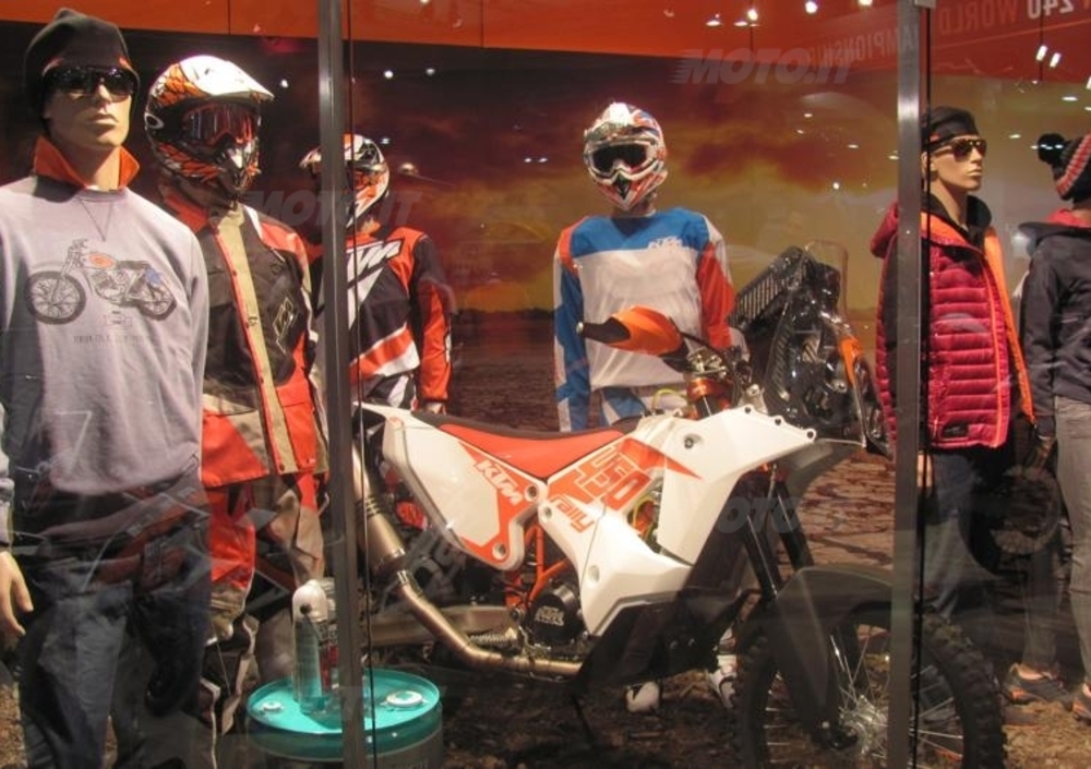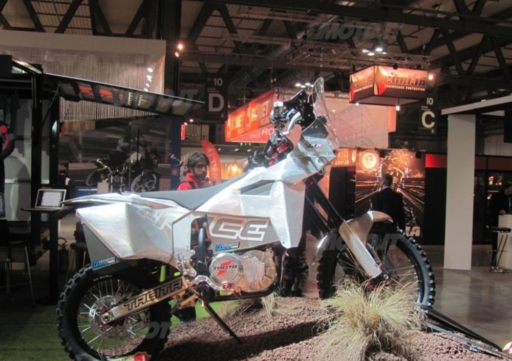 Dopo anni di dominio pressoché assoluto da parte della KTM piano piano diverse case stanno tornando ad impegnarsi nel settore preparando modelli appositamente dedicati alle grandi maratone. Reginetta del “salone” è stata certamente la Honda con la nuova versione della 450 Rally ancora più filante e snella della precedente e rifinita accuratamente nei minimi dettagli. Poi via via tutte le altre dalla bellissima KTM alla solida Yamaha fino alla Beta di Boano e la futuristica Tacita elettrica. Per gli appassionati è stato anche un momento per incontrare i propri beniamini mai così numerosi e disponibili. Allo stand della Honda gongolava, fresco di titolo mondiale, Paulo Gonçalves davanti al nuovo mezzo assieme al suo team Manager Martino Bianchi.