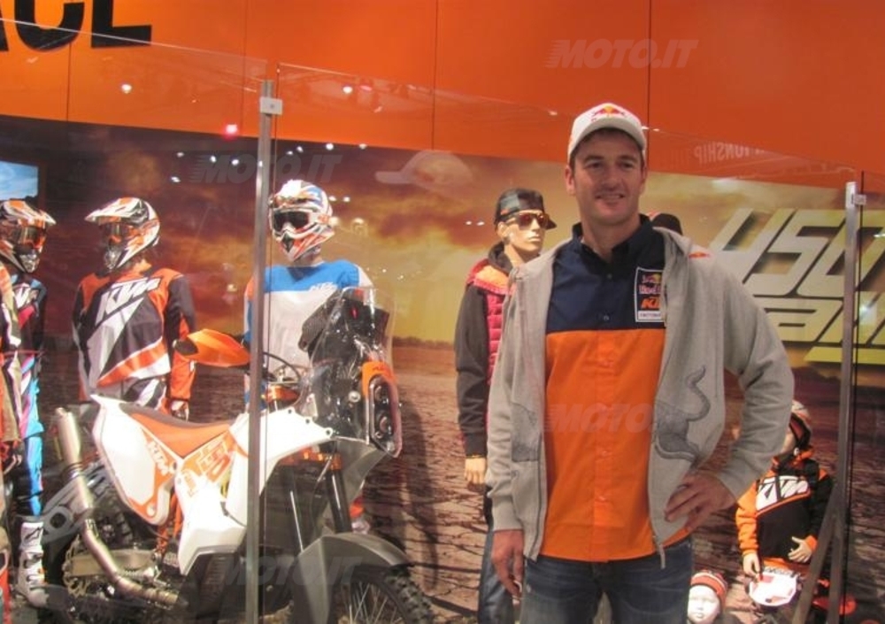 Cyril Despres, con molta dovizia spiegava i dettagli della sua Yamha ad alcuni interessati visitatori e si faceva poi fotografare con un suo giovanissimo fan. Marc Coma girottava con la compagna come un normale visitatore ed un Alex Zanotti raggiante toglieva i veli alla nuova TM 450 pronto per l’ennesima avventura in terra americana. Nonostante la cappa buia della crisi è stato bello vedere che proprio dal nostro mondo vengano degli spiragli di ottimismo per il futuro.