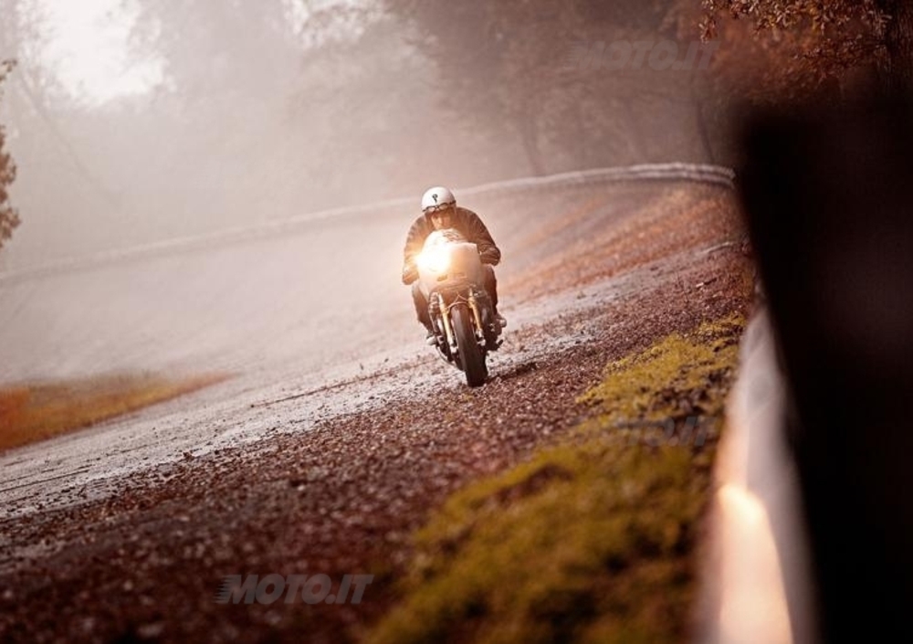 All'avantreno, una Öhlins in stile retro abbraccia una ruota Marvic verniciata in oro, con un look da favola completato da solidi dischi e da pinze Discacciati ricavate dal pieno. Spostandoci al retrotreno, un massiccio scarico 4 in 1 in titanio abbaia le sue intenzioni, mentre il doppio ammortizzatore Öhlins ed il cambio a bilanciere lavorato a macchina sono omaggio alle mitiche racer.