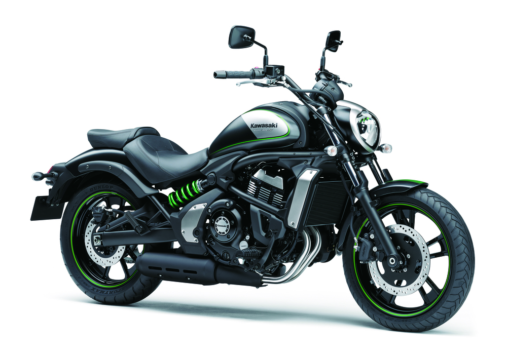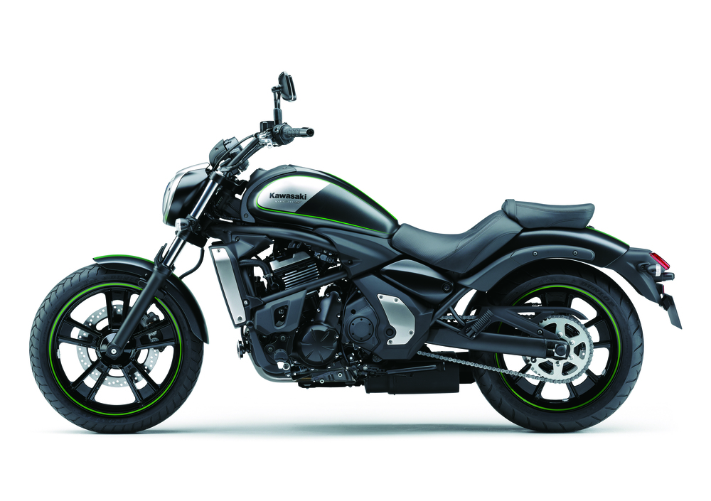 Il nuovo approccio grafico include il classico verde Kawasaki sul serbatoio così come le strisce adesive verdi sui cerchi. La grafica richiama quella delle Muscle Car anni ’70, con verniciatura nera opaca che la rende sicuramente più aggressiva e... Kawasaki, pur allontanandola un po' dalle livree più tipicamente associate al segmento.