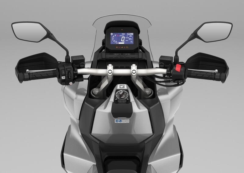 La praticità d’uso viene prima di tutto: il vano sottosella può ospitare due caschi integrali, il vano portaoggetti offre anche una presa di ricarica USB-C e la Smart-Key rende blocco e sblocco delle serrature, oltre che l’avviamento, particolarmente comodi. Il parabrezza è regolabile in altezza su quattro posizioni e il cruscotto con display LCD integra la connettività Honda Smartphone Voice Control system.