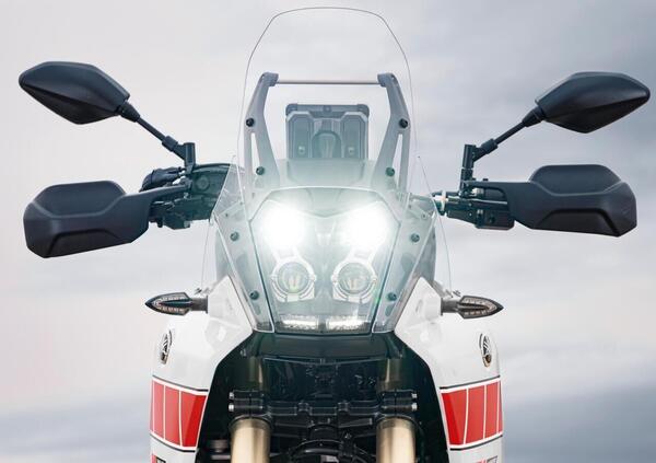 Si rinnova per il 2022 anche la versione Ténéré 700 Rally Edition, ovvero il modello equipaggiato di serie con alcuni accessori originali Yamaha fra i quali ci sono la piastra paramotore di alluminio, il copricatena, la cover radiatore e i cuscinetti laterali in gomma per una migliore aderenza delle ginocchia.