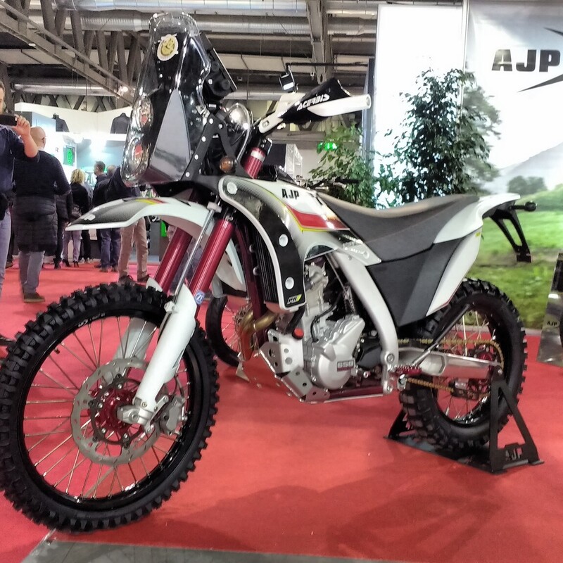 Il marchio portoghese AJP dal 1987 si dedica agli amanti del tassello con una gamma ben calibrata e sanguigna. Negli ultimi anni si è imposto all'attenzione degli appassionati di rally raid con la PR7 che arriva ad EICMA 2023 con un aggiornamento che riguarda principalmente le grafiche e la posizione di guida con un spostamento delle pedane. Tutte confermate le caratteristiche che la rendono un prodotto unico per chi cerca una mono per questo tipo di specialità e con componentistica tutta europea: dalle sospensioni Sachs ai freni Brembo, dalla torretta in pieno stile dakariano al motore 650 monocilindrico di derivazione Husqvarna. Unica concessione ai produttori asiatici è il tablet Samsung impiegato come strumentazione.
