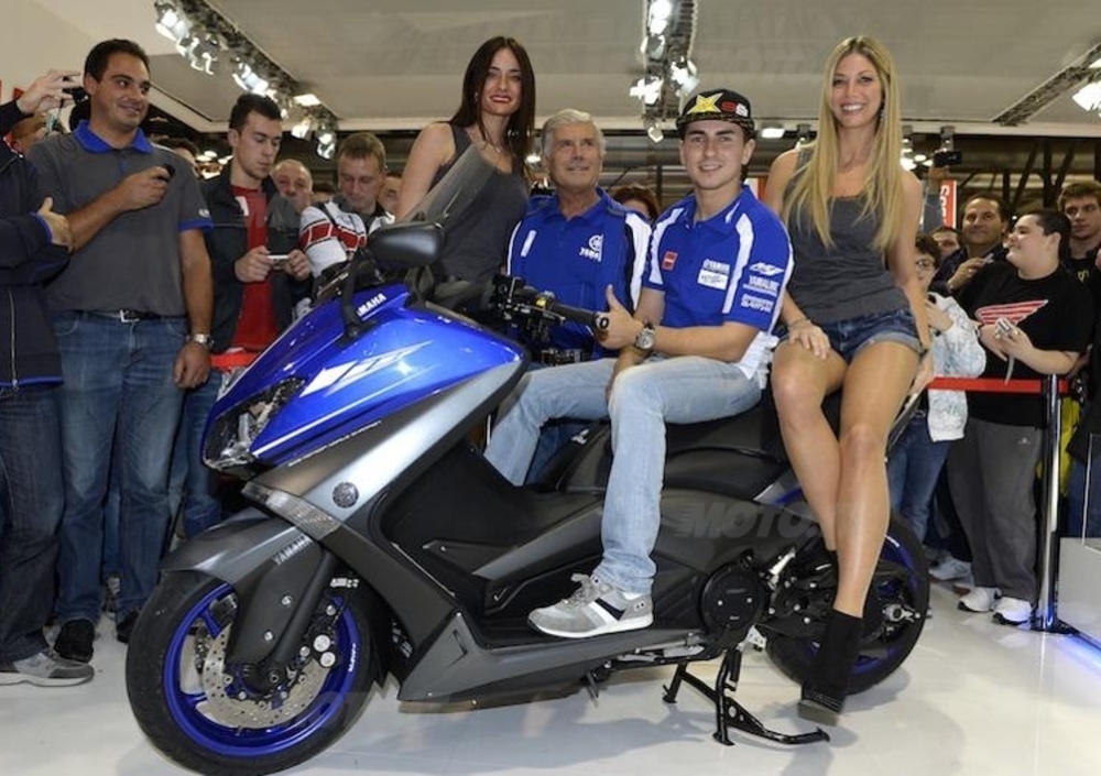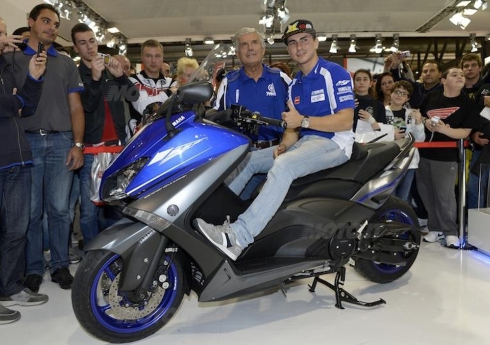 Dopo aver accontentato le moltissime richieste di autografi dei fan, Lorenzo ha ricevuto da “Ago” a nome di Yamaha una speciale versione del nuovo TMAX 530 (quest’anno best seller europeo con già più di 9.000 esemplari venduti solo in Italia) dedicato ai suoi successi in pista. "Mino" aveva a sua volta ricevuto un TMAX personalizzato pochi mesi fa - il campione di Lovere (BG) è da tempo un estimatore ed utente del maxiscooter Yamaha.
