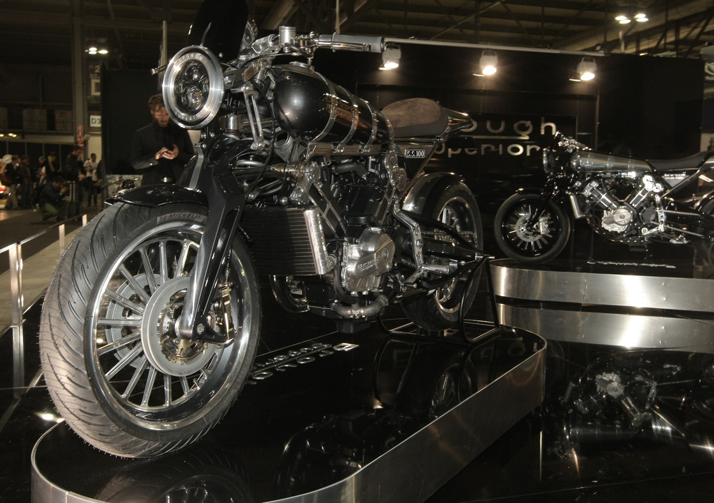 Il preparatore milanese espone una splendida BMW boxer ad aria appropriatamente chiamata Supernatural. Tutte le sovrastrutture sono state oggetto di cura maniacale; innumerevoli i pezzi realizzati da zero per questo esemplare, grazie ad un’evidente abilità di lavorazione del metallo e ad un gusto che si rifà a concetti art déco del resto da sempre presenti nel DNA della Casa di Monaco.