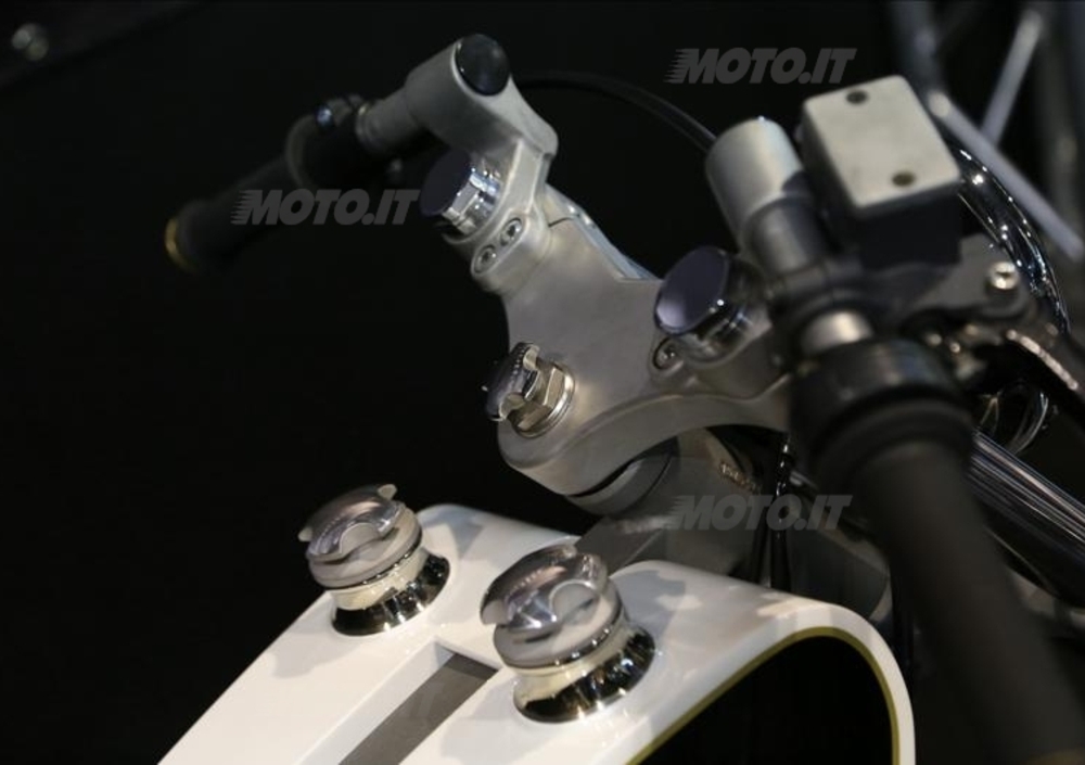 Gli evidenti richiami alle muscle-car statunitensi arrivano all’apice con la presa d’aria ricavata dal pieno montata sul serbatoio, palesemente ispirate alle hot-rod americane.