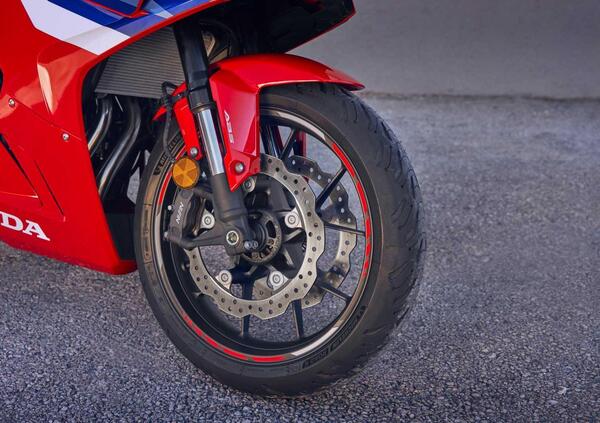 L’impianto frenante può contare sul doppio disco da 296 mm con pinze Nissin ad attacco radiale a 4 pistoncini. Al posteriore, un disco da 240 mm è morso da una pinza a singolo pistoncino. Sulle ruote a 5 razze sdoppiate sono montati pneumatici 120/70-ZR17 all’anteriore e 160/60-ZR17al posteriore. Il cambio a 6 rapporti della CBR500R è dotato di frizione assistita con antisaltellamento. Per la nuova CBR500R 2024 è disponibile una gamma di accessori, organizzata in “pack”, sovrapponibili tra loro in quanto privi di duplicazioni. Ogni componente è acquistabile anche singolarmente.