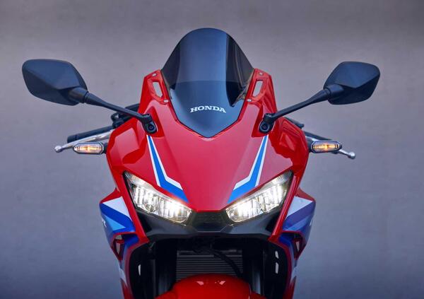 Per il 2024 Honda ha pensato di aggiornare la CBR500R. Così la sportiva media di Honda dedicata ai possessori di patente A2, ha visto cucirsi addosso un restyling ispirato alla sorella maggiore Fireblade. La CBR500R è equipaggiata con il motore da 471 cc, che eroga una potenza di 48 CV (35 kW) e una coppia di 43 Nm. Il telaio in acciaio con struttura a diamante è associato alla forcella Showa SFF-BP con steli da 41 mm, ammortizzatore Showa regolabile nel precarico e doppi dischi anteriori con pinze a quattro pistoncini con attacco radiale. La visibilità notturna è migliorata dal nuovo gruppo ottico anteriore sdoppiato a LED, mentre il display TFT a colori da 5” offre la funzione di connettività Honda RoadSync comandabile attraverso un semplice interruttore a quattro direzioni, retroilluminato. La nuova CBR500R 2024 è dotata del sistema ESS (Emergency Stop Signal) per la segnalazione della frenata di emergenza. L’omologazione è Euro5+. La CBR500R del 2024 ha una nuova carenatura ispirata alla Fireblade e rinnovati gruppi ottici a LED. C’è poi un display TFT a colori da 5”, dotato di connettività per smartphone Honda RoadSync, comandabile e un nuovo blocchetto sinistro con cursore a 4 direzioni, retroilluminato. Il motore bicilindrico parallelo, bialbero 8 valvole, da 35 kW (48 CV), con frizione antisaltellamento, è adatto ai possessori di patente A2, ed è ora dotato di controllo di trazione HSTC (Honda Selectable Torque Control) e di mappature della centralina che rendono l’accelerazione ancora più brillante. Il telaio in acciaio con struttura a diamante è associato ad una forcella Showa SFF-BP (funzioni separate, Big Piston), con steli da 41 mm e ad un ammortizzatore con leveraggio Pro-Link. Potenti i freni, che confermano i doppi dischi con pinze a quattro pistoncini con attacco radiale. L’altezza della sella è a 785 mm, ciò rende la CB500 Hornet particolarmente facile da guidare da motociclisti di ogni statura. Il serbatoio del carburante ha una capacità di 17,1 litri e Honda indica un consumo di 28,6 km con un litro, per un’autonomia di oltre 480 km. Il peso con il pieno della CBR500R è pari a 191 kg.