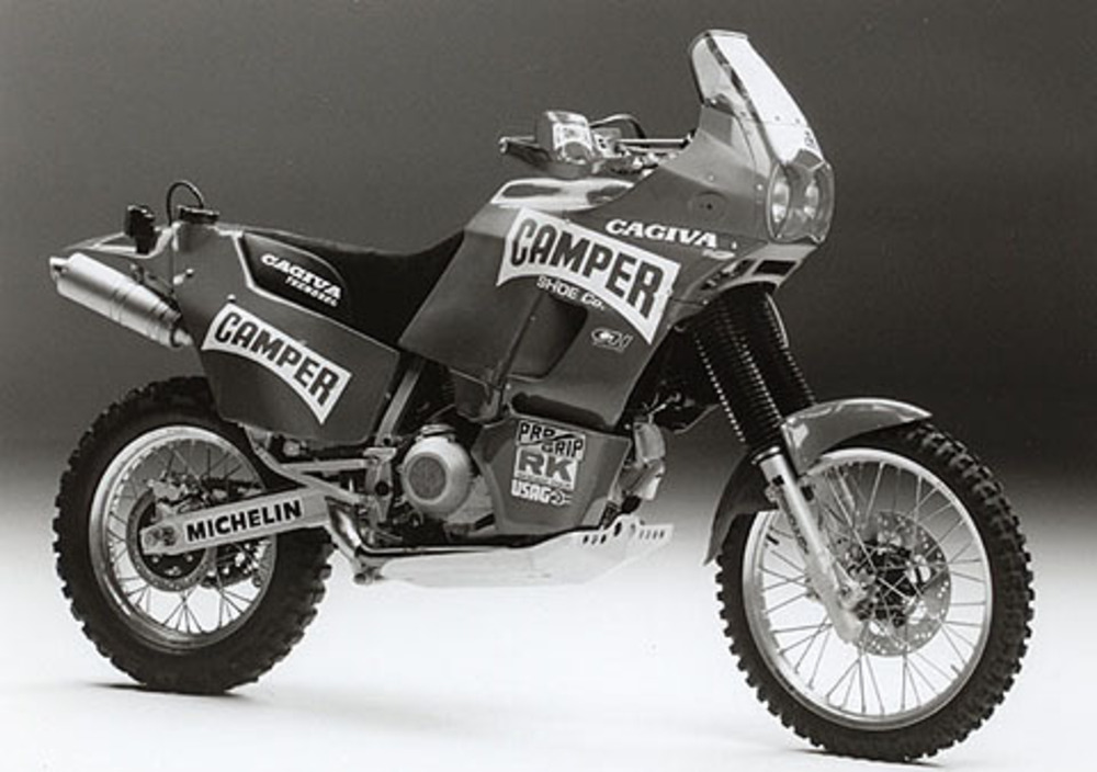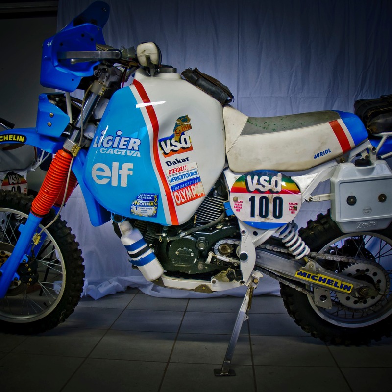 La parte dedicata ai vari modelli Elefant è ricca di schede e di belle foto. Tutte le moto sono state fotografate in studio. Dalla prima Elf-Ligier 750 da 73 cavalli (1985) alle successive sette evoluzioni, tra le quali spiccano la 850 XD10 dell’87 (la prima col telaio speciale e over 80 cavalli), la 904 XD11 dell’88 detta “la petroliera” perché portava a spasso gli obbligatori 70 litri di carburante e cinque di acqua (190 chili a secco), la 944 D90 del 1990, che vinse la sua prima Parigi-Dakar con Orioli (terzo De Petri e settimo Arcarons). Dal 1993, finita l’era dei leggendari ed esagerati prototipi che macinavano la sabbia a 190 all’ora, si passò alle 904 SP Marathon, prima e seconda serie fino al 1996.