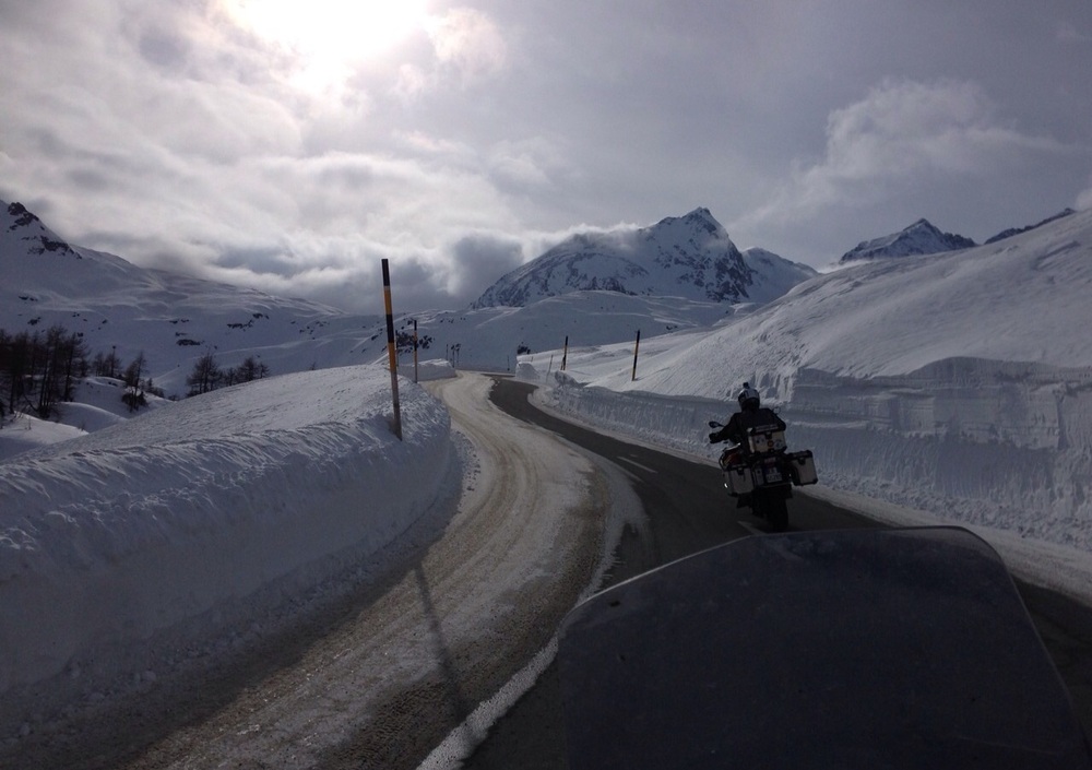 Giovedì 29 gennaio, ore 13:46 - Eccoci appena arrivati sul passo del Bernina. Per il momento siamo solo noi. Il sole c'è, ma il termometro segna -9 e fortunatamente abbiamo trovato strade decentemente pulite, uno spettacolo!