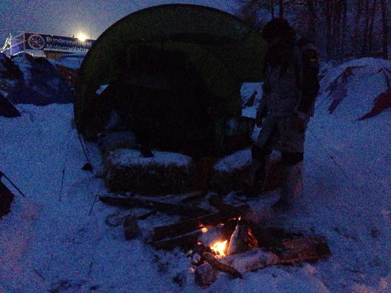Sabato 31 gennaio, ore 07:14 - La notte è passata, il pagliericcio e i sacchi a pelo hanno fatto il loro dovere. Adesso ci siamo riaccesi il fuoco per scaldarci in attesa del sole in modo da ritirare tutto e poter ripartire!