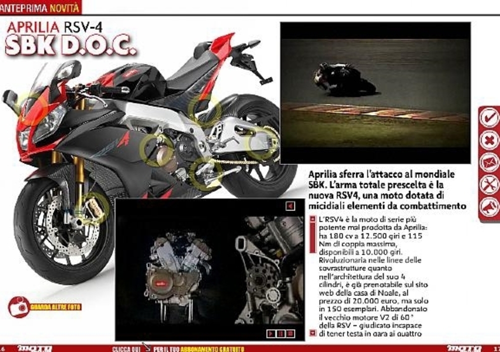 In questo numero di eMOTO MAGAZINE le prove su strada e i test video della Ducati 1198 e la BMW K1300R ma anche tutti i segreti e i video esclusivi su l'Aprilia RSV4; la Kawasaki ER6N, l'inedito KTM Supermoto 990 T, la nuova Triumph Bonneville, la Kawasaki VN1700 Voyager e Yamaha Majesty 400.