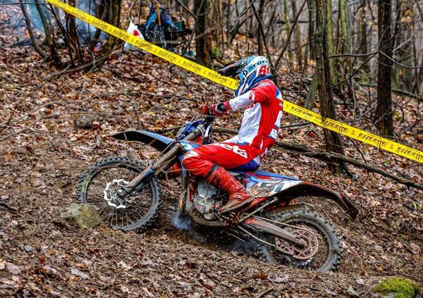 Sabato, dunque. Cinque giri, Enduro, Extreme e Cross Test per ogni giro, più il Super Test inaugurale dell’evento, a cura del Moto Club Azeglio e della sovrintendenza di Federazione e OffRoad Pro Racing. Va detto subito, il Campionato è ripartito con la sesta marcia di Steve Holcombe, Campione Italiano e del Mondo in carica. Il pilota inglese, protagonista del “colpo” di mercato piloti invernale, è passato dal Team Beta ufficiale di Fabrizio Dini all’ufficiale Honda diretto da Matteo Boffelli, ma non ha avuto bisogno di particolari adattamenti né alla Moto né al nuovo ambiente di lavoro. Holcombe, insomma, è ripartito esattamente da dove si era fermato alla fine della scorsa stagione, in testa al gruppo. Dopo le vittorie parziali di Josep Garcia (il Pilota spagnolo alla corte di Fabio Farioli è il benvenuto dell’anno all’Italiano) nel Super Test e di Samuele Bernardini, Honda, nella prima “linea”, Holcombe ha vinto la prima Extreme ed è andato in testa alla corsa. Da lì non si è più mosso e, vincendo altre sei Speciali, ha concluso la Gara con un vantaggio di meno di mezzo minuto sul secondo assoluto, Andrea Verona, GasGas, e di poco più di un minuto sul terzo, quel Nathan Watson che lo ha sostituito tra le file del Team Beta.