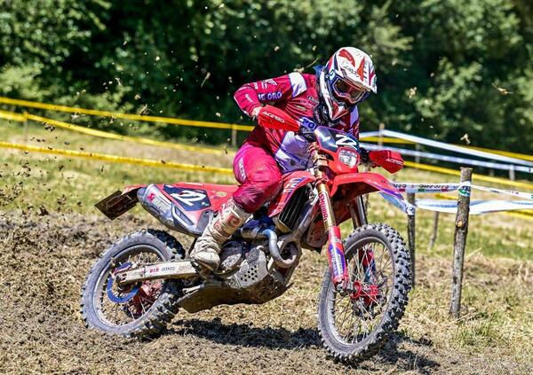E poi la Gara. Sabato Brad Freeman, Pilota fuoriclasse e “punta” insostituibile della Squadra ufficiale Beta, ma non certamente tra i più fortunati nell’ultimo periodo, mette subito in chiaro. Dopo aver vinto il Super Test inaugurale di misura, si capisce, e seguito da vicino Holcombe, Honda, nella prima del mattino, il Cross Test, prende le misure con la gara, si impone di poco nella prima Extreme, poi dilaga con una tonante, sonora vittoria nel primo Enduro, stravinto in solitario con l’umiliazione di un distacco a dir poco imbarazzante agli avversari, 17 secondi a McDonald e Ruprecht, Sherco, e 18 a Verona e Cavallo, GasGas e TM. Brad Freeman, in volo radente con la Beta 300 ufficiale. Freeman si dichiara imprendibile. Ogni gara quest’anno, sia essa di Mondiale o dell’Italiano, è una grande battaglia dal sapore della sfida e della rivincita, questa no.