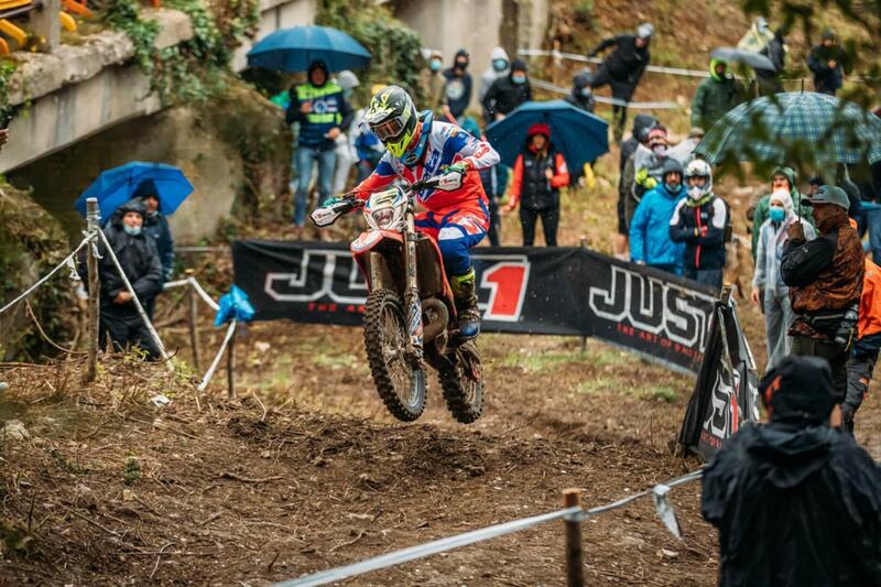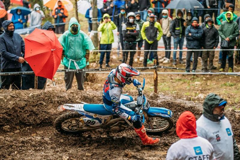 Il Mondiale Borilli EnduroGP è una bestiaccia. Un giorno di sole e uno d’inferno, promesse di dolce e di forte tremendamente, perfettamente mantenute. La domenica del Gran Premio d’Italia di Spoleto è stata una interminabile giornata di costante, perfida pioggia battente. Ha iniziato alle dieci di mattina e… ancora piove. Non un solo minuto di tregua, il tracciato portato al limite della difficoltà, paddock allagato, corrente elettrica saltata e quell’inquietudine, persistente e corrosiva sensazione di infinito disagio, che ti congela il cuore e ti prende fin nelle ossa. A non essere Enduristi! Quasi difficile ricordare che il sabato, al contrario, andrà probabilmente in archivio come l’ultimo giorno d’estate del Mondiale di Enduro 2020.