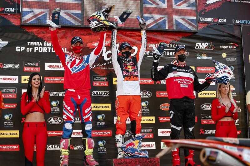 Santiago do Cacem, Portogallo, 10 Ottobre 2021. Un paio di nomi che equivalgono a una overdose di agonismo e spettacolo. Josep Garcia, KTM, vincitore di entrambe le giornate di gara nonostante la pressione esercitata dall’irriducibile Freeman, Beta. Andrea Verona, GasGas, vincitore Sabato e vincitore Domenica di misura, tutte e due le volte davanti all’osso duro Davide Guarneri, Fantic. Ne è passata di acqua sotto i ponti da Luglio! Interrotto il Mondiale per lasciare spazio alla Sei Giorni Internazionale di Rivanazzano, infatti, l’Enduro ha vissuto pagine già leggendarie, cosicché la lunga attesa tra l’ultima in Svezia e il nono e decimo appuntamento della stagione è volata nell’implacabile euforia generale. Gli Eroi dell’ISDE Lombardia-Piemonte, autori di una indimenticabile doppietta, sono tornati a competere nella massima serie planetaria, con la disciplina e la reputazione della scuola italiana cresciute a dismisura. Ottobre, si corre in Portogallo per l’EnduroGP Terra Unica, quinto della stagione e penultimo prima del bilancio definitivo del Gran premio di Francia. Si corre a Santiago do Cacem, un Municipio per 30 mila abitanti nel Sud del Paese, 150 chilometri dalla Capitale Lisbona.