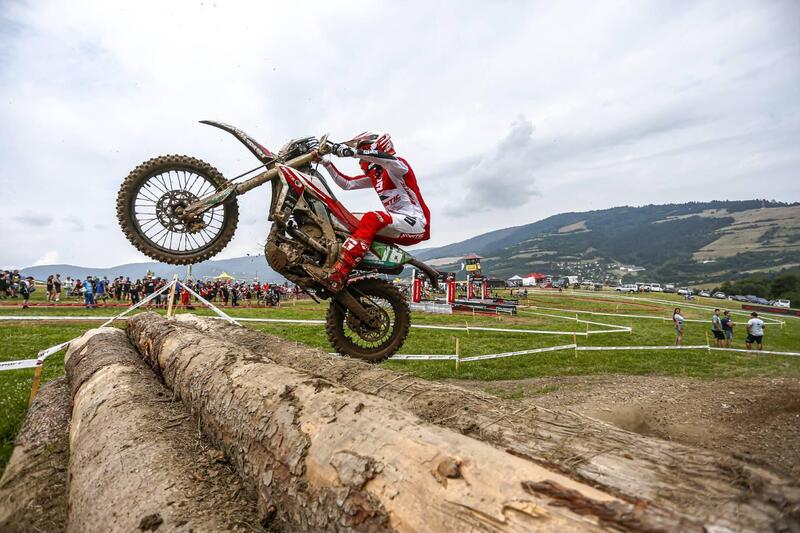 Due giorni di gara, come sempre belli e intensi, due protagonisti assoluti che si sono alternati sul podio del Gran Premio di Slovacchia, Steve Holcomb, Beta, il sabato, Andrea Verona, GasGas, la domenica. Posizioni invertite sui podi di giornata, sui quali sono saliti anche Ruprecht, TM, sabato, e McDonalds, Sherco, domenica. Quattro giri di prove speciali sull’anello di poco meno di 60 chilometri, Extreme, 600 metri, Cross, 5.4KM, Enduro, 5.5, CrossPro (in realtà un secondo passaggio sulla “linea”), 4.7. Impegno notevole. Tempo, soprattutto domenica, variabile.