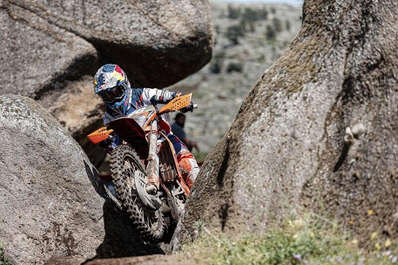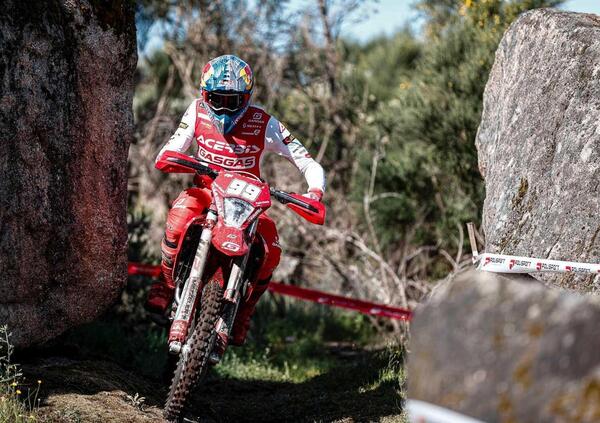 A Valpaços, tuttavia, entra in scena la terza figura del Mondiale promesso: Andrea Verona. L’asso GasGas factory è il secondo protagonista assoluto della Domenica finale del secondo Gran Premio EnduroGP della stagione. Determinato fino all’ultimo metro a vincere la giornata di gara, soddisfatto di un secondo posto che vale come una vittoria (e non è solo un modo di dire). Holcombe vince tre speciali, Verona quattro nel finale incontenibile ma, come detto, non basta.