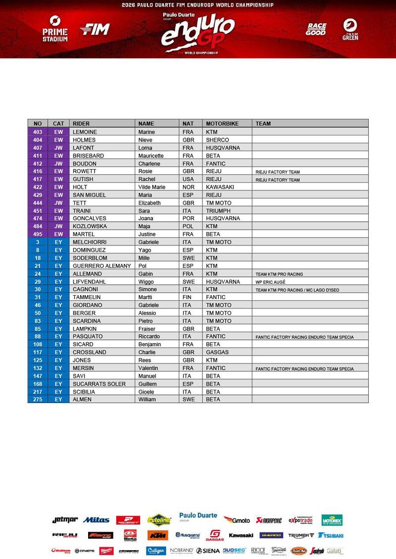 © Immagini Enduro World Championship, Future 7 Media, CIE, Beta Media, KTM, GasGas, Honda RedMoto Media, TM Team Boano, JET Racing, Triumph