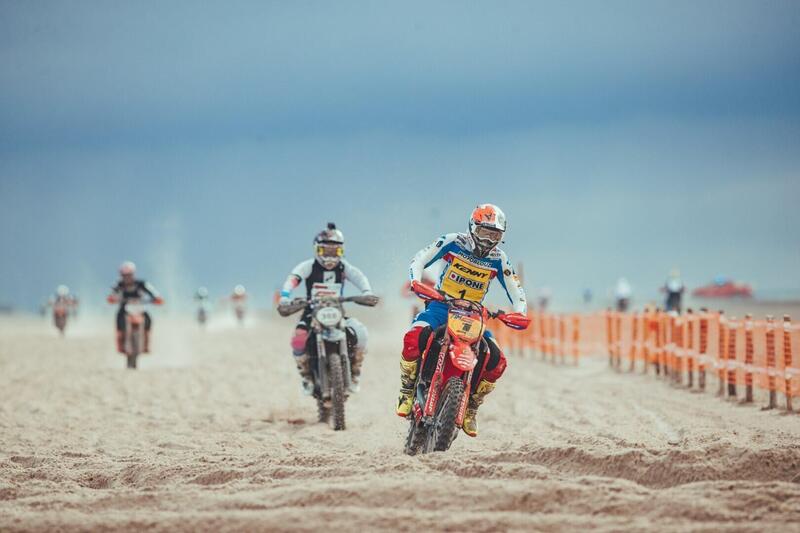 La corsa si sviluppa immediatamente sul braccio di ferro tra il Detentore, Todd Kellet, e l’aspirante “vendicatore”, Milko Potisek, che ha vinto le edizioni 2018, 2020 e 2022. Ma l’holeshot, prima curva da pelle d’oca alla fine del rettilineo infinito, a Stella Plage, è di Daymond Martens, già vincitore della Gara nel 2017. Il primo giro è “teorico”, la spiaggia è perfettamente levigata e così il purgatorio di evoluzioni dell’interno. Poi diventa un inferno. La superficie diventa una tempesta, già al secondo giro i doppiati non si contano. I battistrada ben presto si trovano piccoli cespugli, quando non veri e propri muri, di ritardatari. Molti sono già sfiniti e si fermano a metà del giro, cadono, non hanno la forza di rialzarsi. Quando in piedi aspettano inebetiti dalla fatica. Lasciamo passare questo che arriva e poi andiamo, e ne passano cento. In testa è lo spettacolo del talento e della tecnica. Kellet, Potisek, Van Berkell, i fratelli Miot. Dopo un'ora di gara, 3 favoriti nelle prime 3 posizioni. Todd Kellett davanti, poi Milko Potisek, di ritorno all'Enduropale dopo una serie di infortuni, e Cyril Genot. Ma niente e nessuno sembra in grado di fermare Kellett. Il pilota Yamaha controlla.